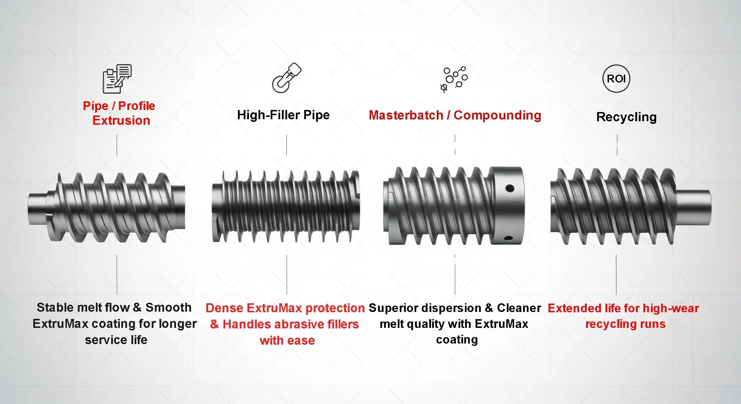Our premium coating engineered to take on the most abrasive materials, extending component life and ensuring consistent output quality in high-volume production.